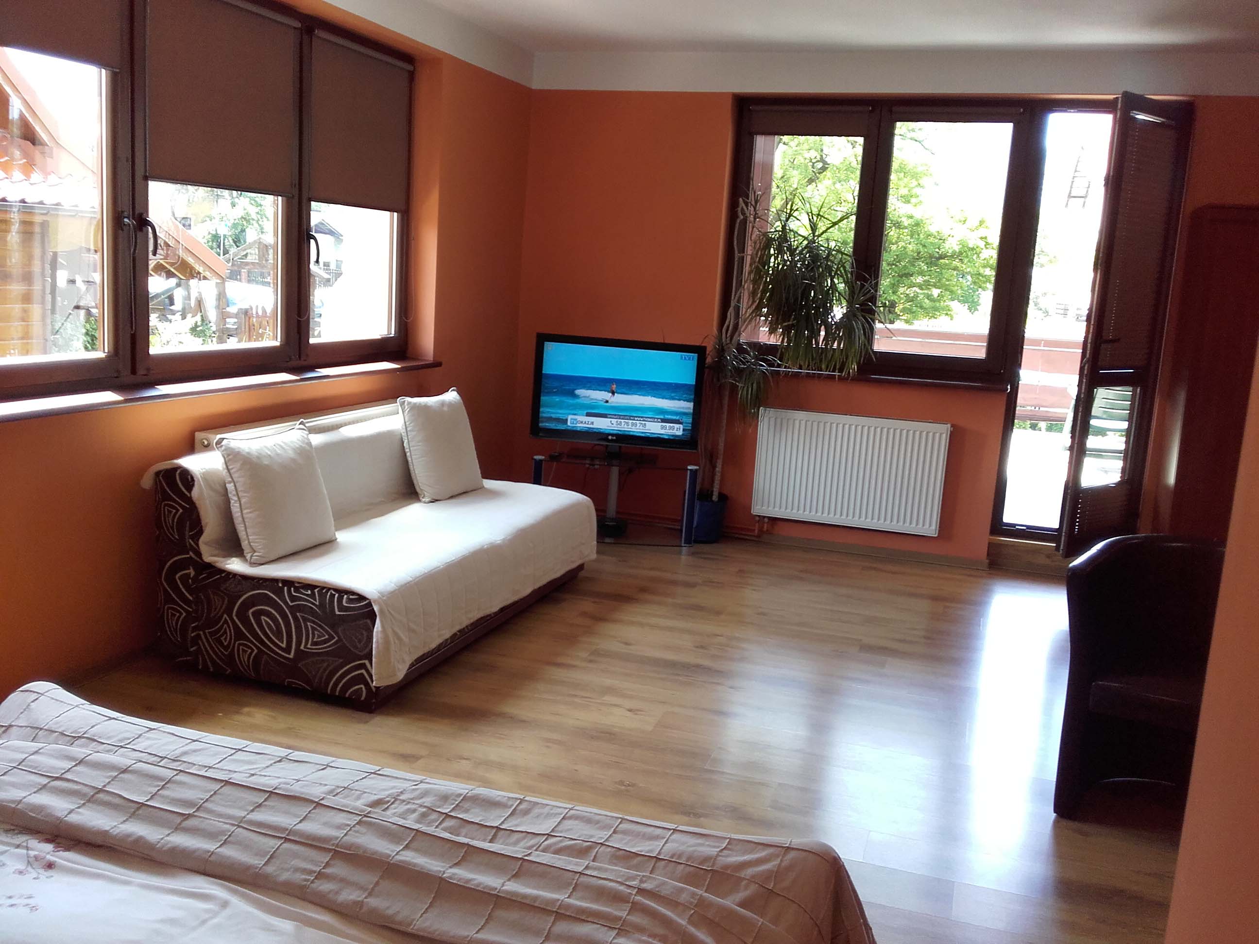 Studio doskonałe dla rodziny z dziećmi. Dwa pokoje o wysokim standardzie połączone drzwiami. Widok na ogród i górę Czantoria.