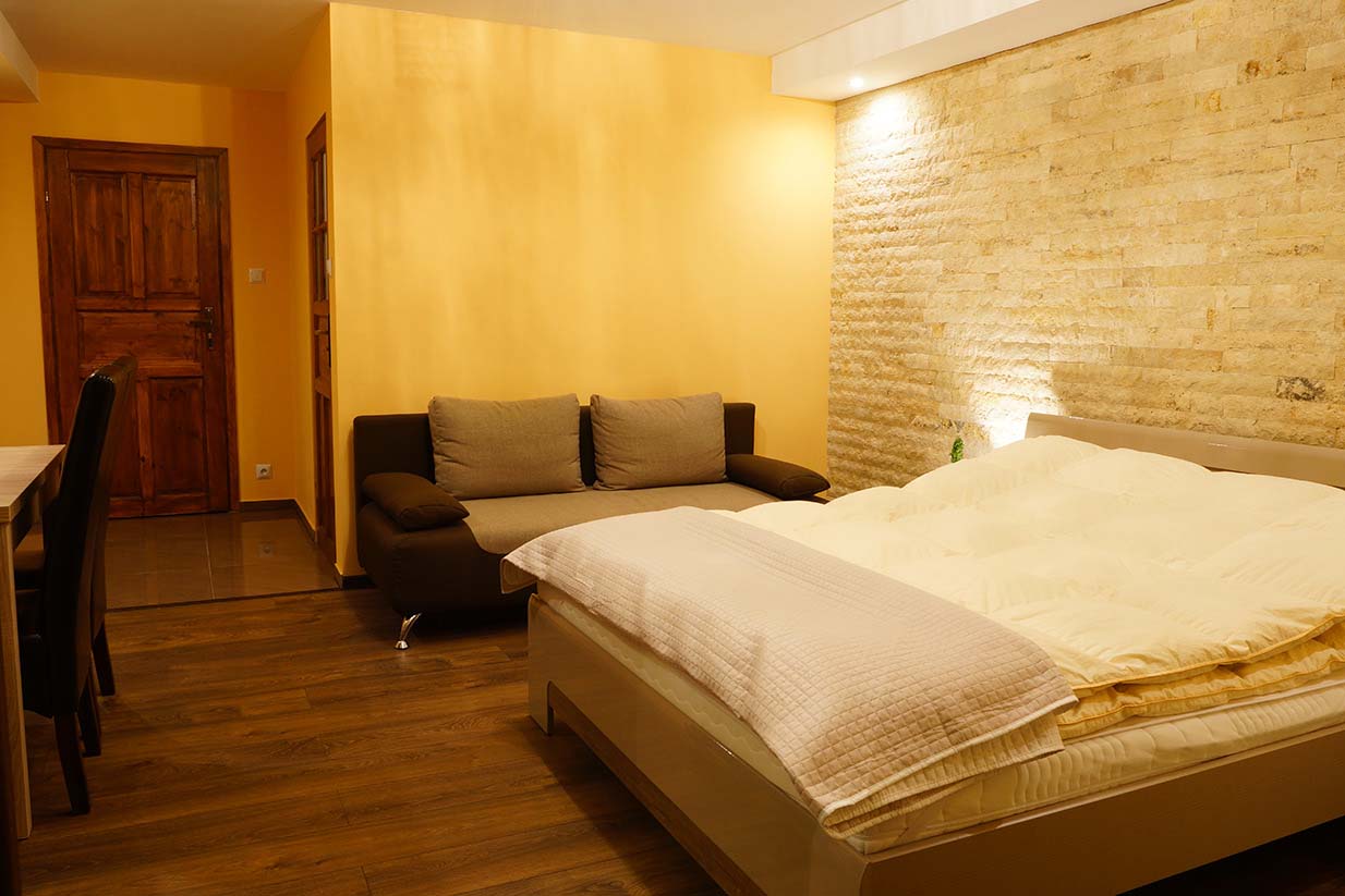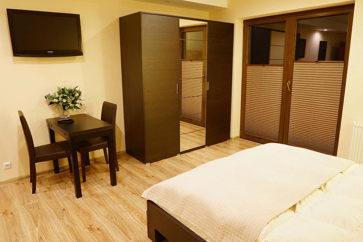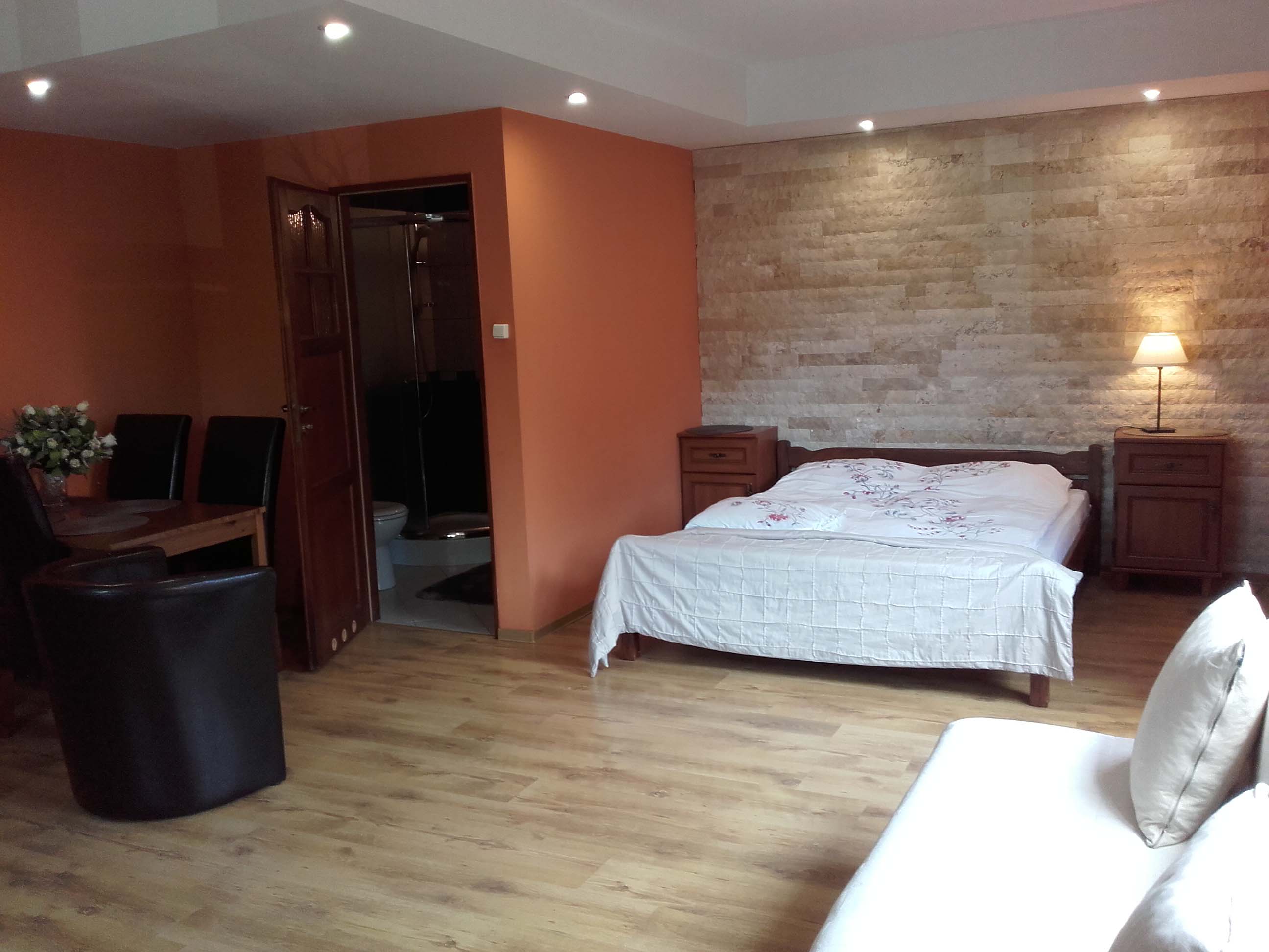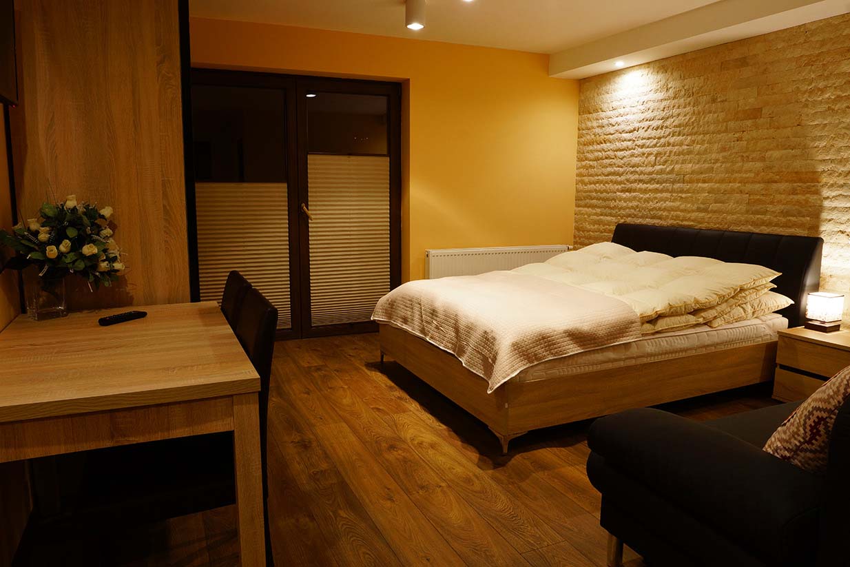 Oferujemy pokoje w hotelowym standardzie, każdy z własną łazienką. Pokoje są wyposażone w nowe meble, wygodne duże łóżka, TV.