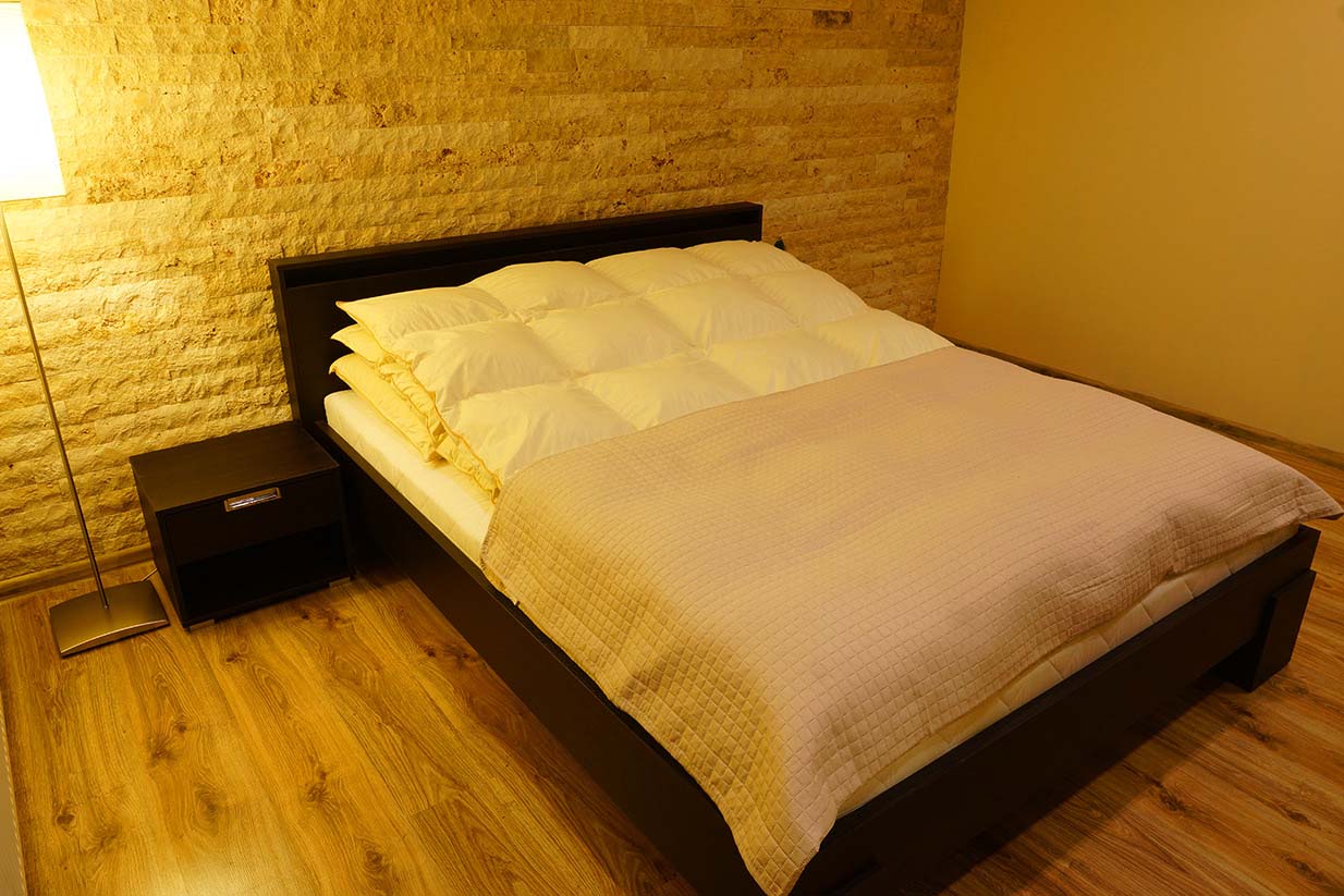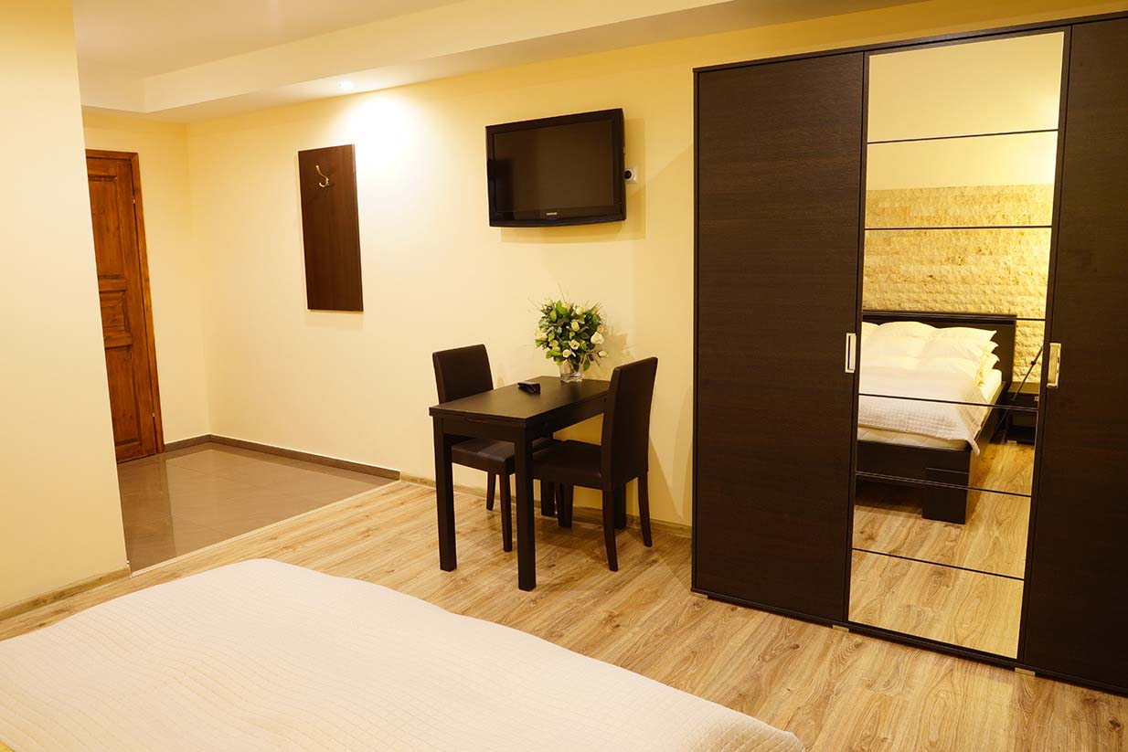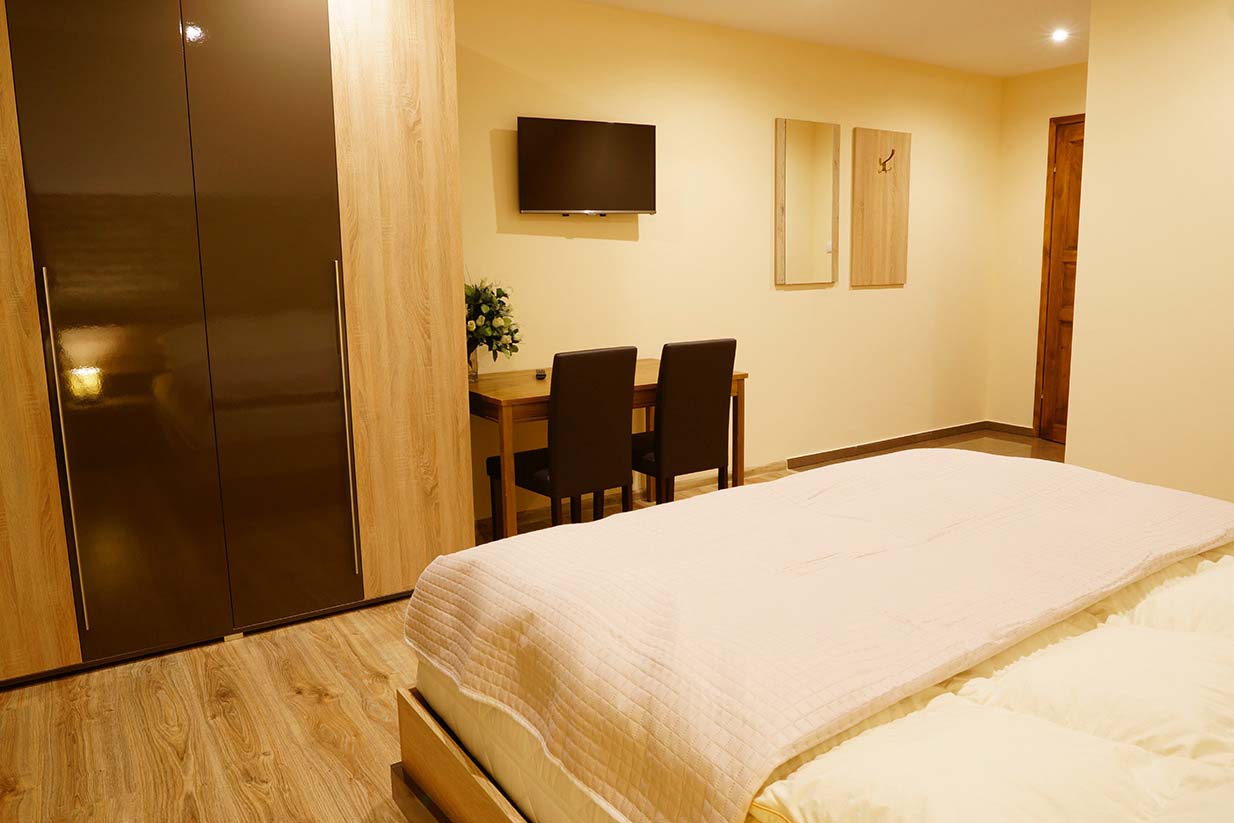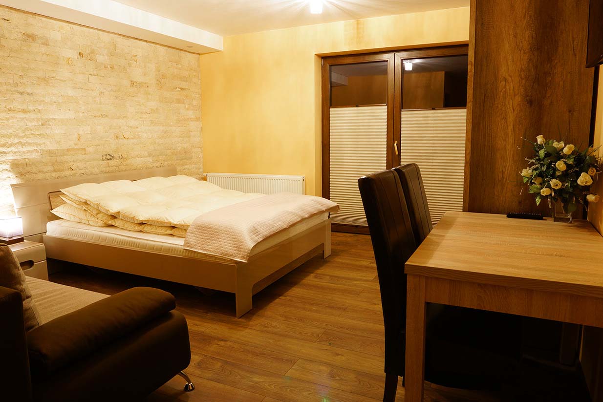 Oferujemy pokoje w hotelowym standardzie, każdy z własną łazienką. Pokoje są wyposażone w nowe meble, wygodne duże łóżka, TV.